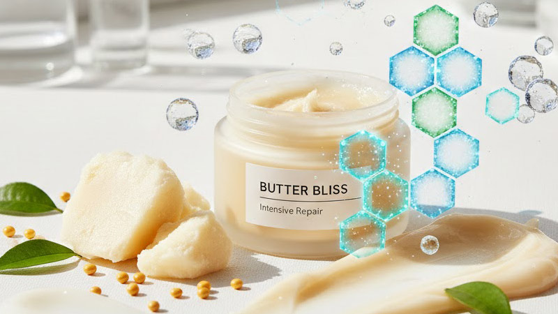 - شی باتر (Shea Butter): مغذی، حاوی اسیدهای چرب و مسدودکننده برای جلوگیری از اتلاف آب.