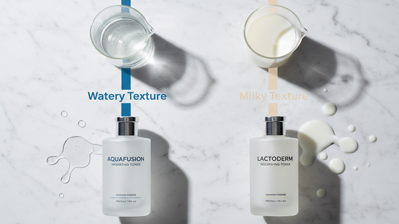 پس از بررسی ترکیبات، نوبت به انتخاب بافت مناسب میرسد. تونر رطوبت رسان پوست با دو بافت اصلی عرضه میشود که هر یک بر سرعت جذب و میزان آبرسانی تأثیر میگذارند. انتخاب بافت مناسب بر اساس نوع پوست و ترجیح شما برای لایهبندی محصولات انجام میشود.