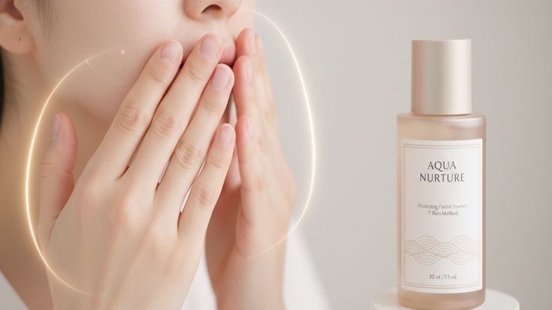 - با دست (روش ۷ پوست کرهای): برای پوست خشک و حساس، چند قطره از تونر رطوبت رسان پوست را کف دست ریخته و با ضربات آهسته و ملایم، مستقیماً روی صورت و گردن فشار دهید. این روش، رطوبترسانی بیشتری را تضمین میکند.