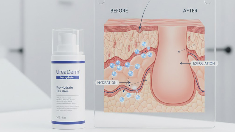 - ترکیبات کلیدی: اوره (۲۰% تا ۴۰%) و ترکیبات لایهبردار مکمل مانند اسید سالیسیلیک یا اسید لاکتیک برای تقویت اثر درمانی.
